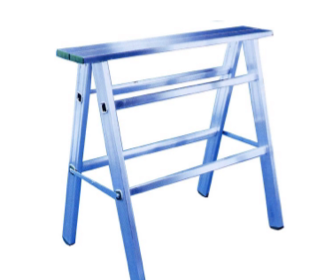 Cavalletto pieghevole in alluminio, campassi antidivaricamento in acciaio, tappi antisdrucciolevoli alla base e cerniere in alluminio. Piano dim. 16,5×90,6 cm