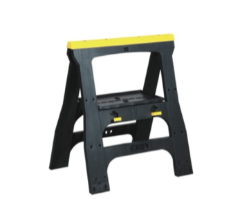 Cavalletto pieghevole in PVC, colore giallo e nero con ripiano e cerniere in PVC