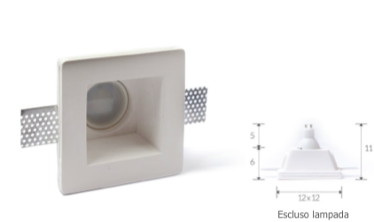 Faretto in gesso ALFA ad installazione a incasso. Grado di protezione IP20. Alimentazione: GU10 tensione di rete.