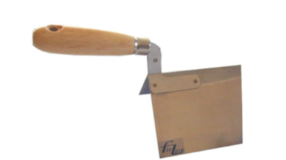 Frattone in acciaio inox con lama ad angolo esterno ultra flessibile, piegata a 80° con possibilità di flettere fino a 90°, manico in legno.
