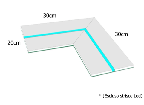 Raccordo LedPan a “L” in cartongesso da 9,5mm e Silipan (lastra in ossido di magnesio fibrorinforzato) da 3mm, di spessore totale 12,5mm, completi di profili dissipatore in alluminio di copertura diffusore piana in PMMA opalino.